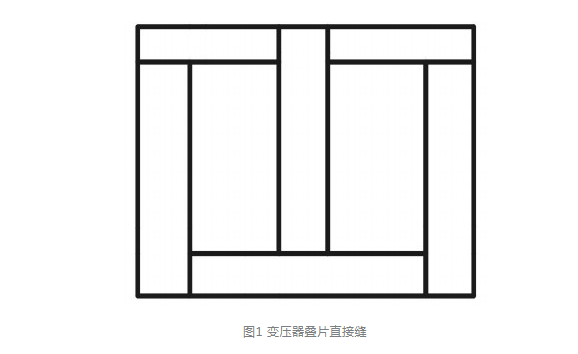 如圖1所示。其特點(diǎn)是加工和疊片都比較方便,搭接面積大,因此所疊裝的鐵心結(jié)構(gòu)強(qiáng)度好,整體性強(qiáng),不易變形,但只能用于熱軋或冷軋無(wú)取向硅鋼片。如用于沿軋制方向磁性能好的冷軋取向硅鋼片,由于在接縫處的磁通不是沿軋制方向通過(guò),磁性能變壞,引起空載損耗增加。