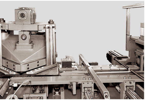 沖缺沖床 兩個(gè)沖缺沖床主要由伺服電機(jī)、床身、導(dǎo)柱、導(dǎo)套、合金刀具、橫向伺服定位裝置組成,用來(lái)沖切軛片所需的90°V型 缺口、中柱片去角。 刀座行程: 18mm; 斜刃角度:2° ;